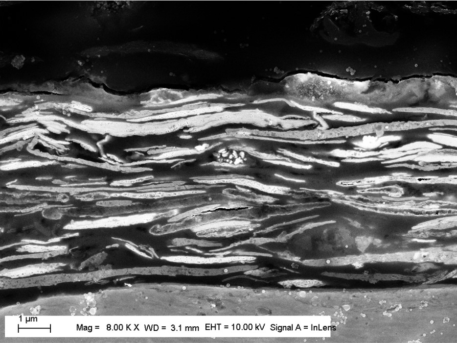 The positioning of the zinc flakes gives the film a barrier effect that isolates the metal from the corrosive environment. Indeed the flake morphology increases the length of the path that the aggressive substances must travel to reach and corrode the substrate.